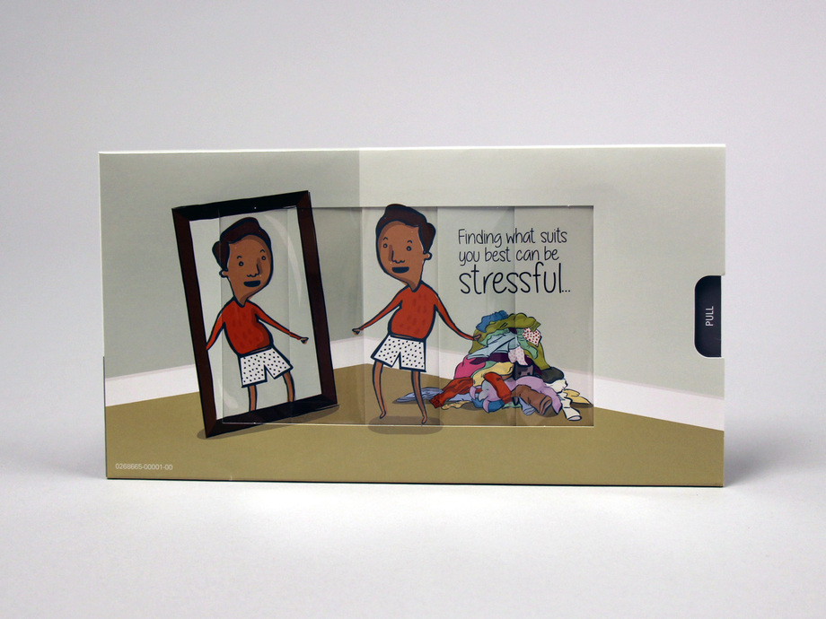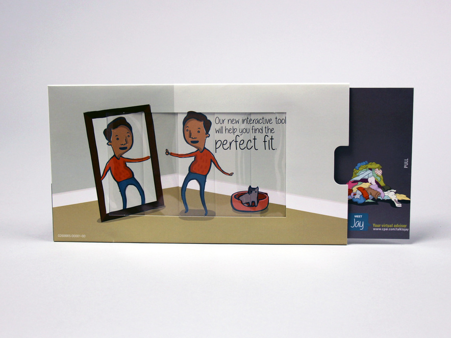 Prudential used our manual changing picture to communicate the benefits of its "Virtual Advisor" website. When you pull on the tab, the image on the cover immediately transforms to coincide with the messaging.