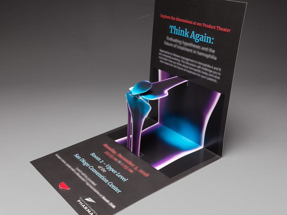 An invitation is much more impactful when the meetings subject matter pops out at you. “Simple” staged pop ups are amazingly effective communication tools for accentuating your message. The pop up automatically takes shape the folder is opened and can lock into place to become a desktop reminder.