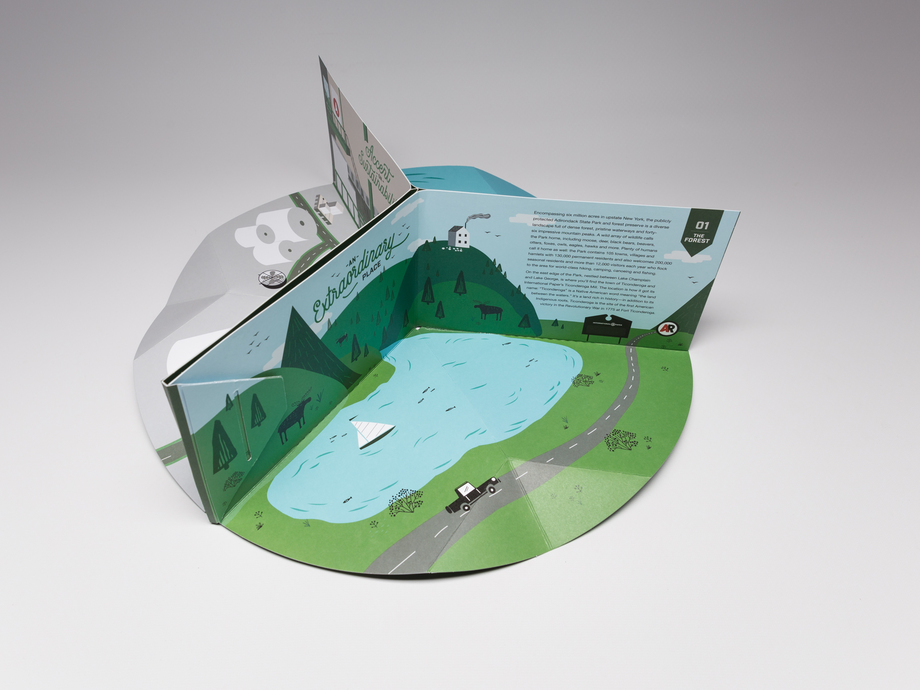 Trekk Design was looking for a unique and creative way to highlight the mill where Accent Opaque paper comes from. The purpose was to tout the performance of the print quality, the sturdiness of the paper (120# cover weight), and to highlight the Ticonderoga Mill where Accent Opaque is manufactured. The premium International Paper mill is the only mill in the country located at a state park, making it a unique mill in the market.