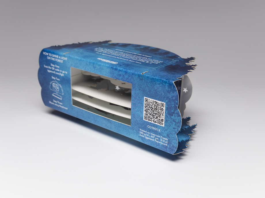 The design also needed to reflect Iggesund's theme "Shine a light on the forest". The theme is specific to the origin of Iggesund’s flagship product, Invercote, as well as the important role that sustainable forestry and fibre-based products can play in mitigating climate change.